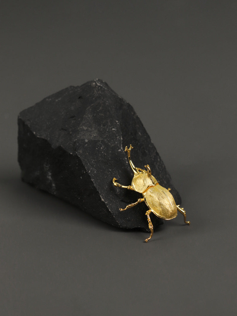 This beetle bug brooch features an elephant beetle. It made from genuine solid 925 sterling silver and stamped as S925.Lead and Nickel safe. You can choose silver or gold style. Gold style plated with 18k gold. Fit for gifts or collect by yourself.
